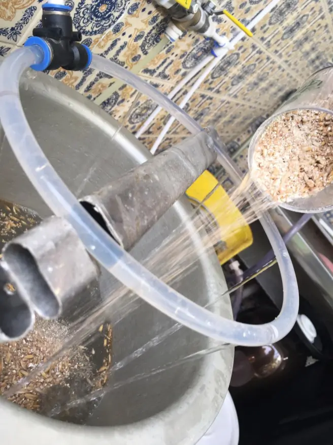 - Panela de mostura de 100L com fundo falso e chuveirinho (sparge) para recirculação